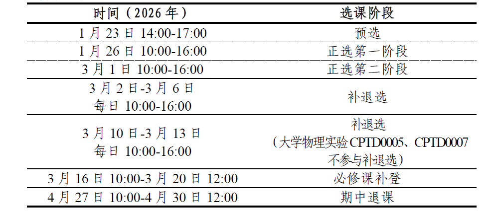 教务部于日前发布了《南开大学2025-2026学年第二学期本科生选课通知》 (https://jwc.nankai.edu.cn/2025/1225/c35436a587639/page.htm),请仔细阅读源通知及该通知附件中的《选课手册》前几页说明,知晓相关规则。学院特别提醒全体同学注意: