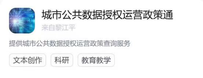由黎江平、左翔羽、徐泽正组成的城市发展与管理专业团队,研发了一套“城市公共数据授权运营政策通”智能体。该智能体专注于全国各城市公共数据授权运营政策的汇集与解读,打破信息壁垒,为政府部门、数据商、金融机构等用户提供一站式政策查询、核心条款对比、申报流程指引服务,有效推动数据要素市场化流通与合规利用,为数据驱动的城市发展提供决策支持。