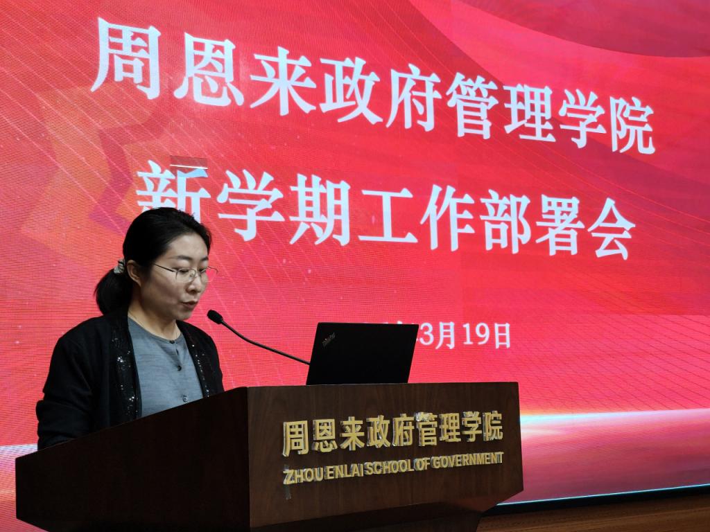 为深入贯彻落实学校新学期工作部署会精神,科学谋划学院 “十五五” 开局之年发展蓝图,3 月 19 日,周恩来政府管理学院在学院 128 报告厅召开 2026 年新学期工作部署会。学院党委书记王慧主持会议,学院班子成员及全体教职工参会。