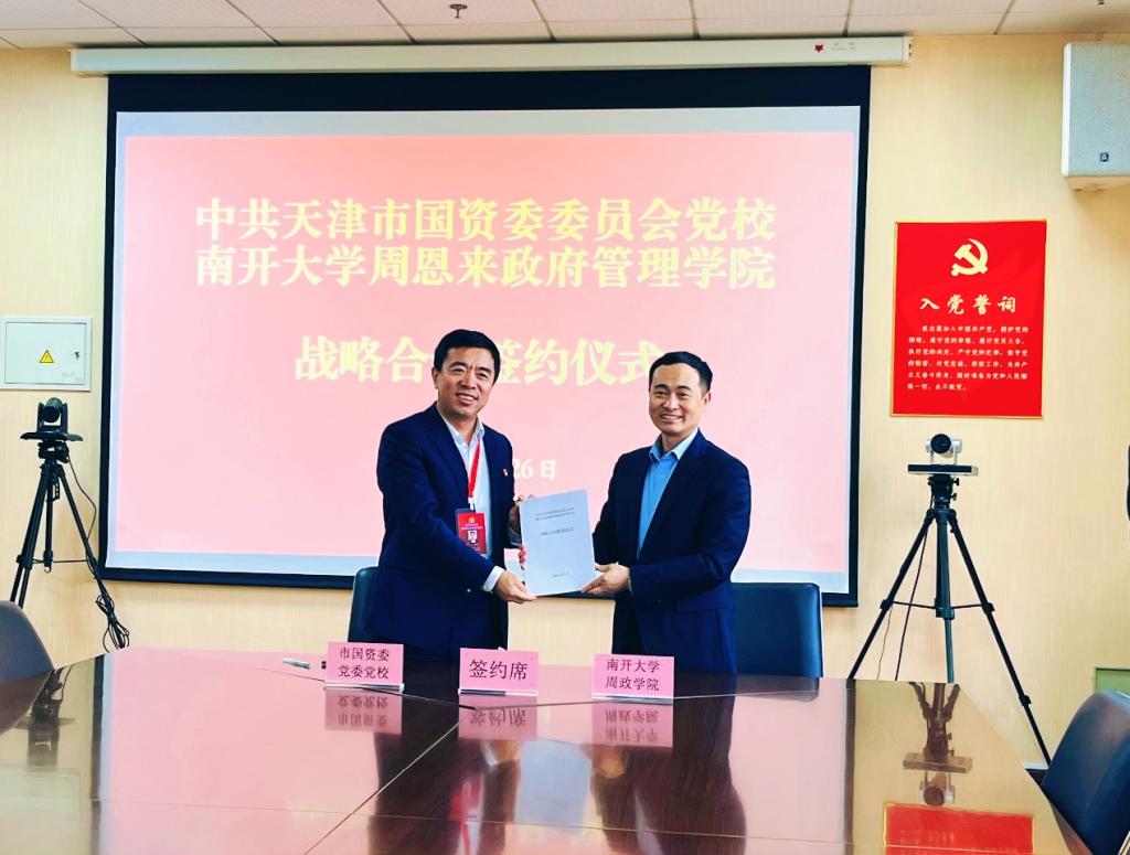 天津市国资委党委党校副校长宋国强表示,与国内顶尖的南开大学周恩来政府管理学院携手合作,是党校发展的一件大事、喜事。党校是党员干部教育培训的主阵地、主渠道,始终坚守“为党育才、为党献策”的初心使命。高校学科体系完备、科研实力雄厚、人才资源富集。双方建立战略合作关系,既是强化思想引领、深化理论创新、提升教育培训质效的现实需要,也是服务中心大局、推动党建与事业深度融合的务实行动。