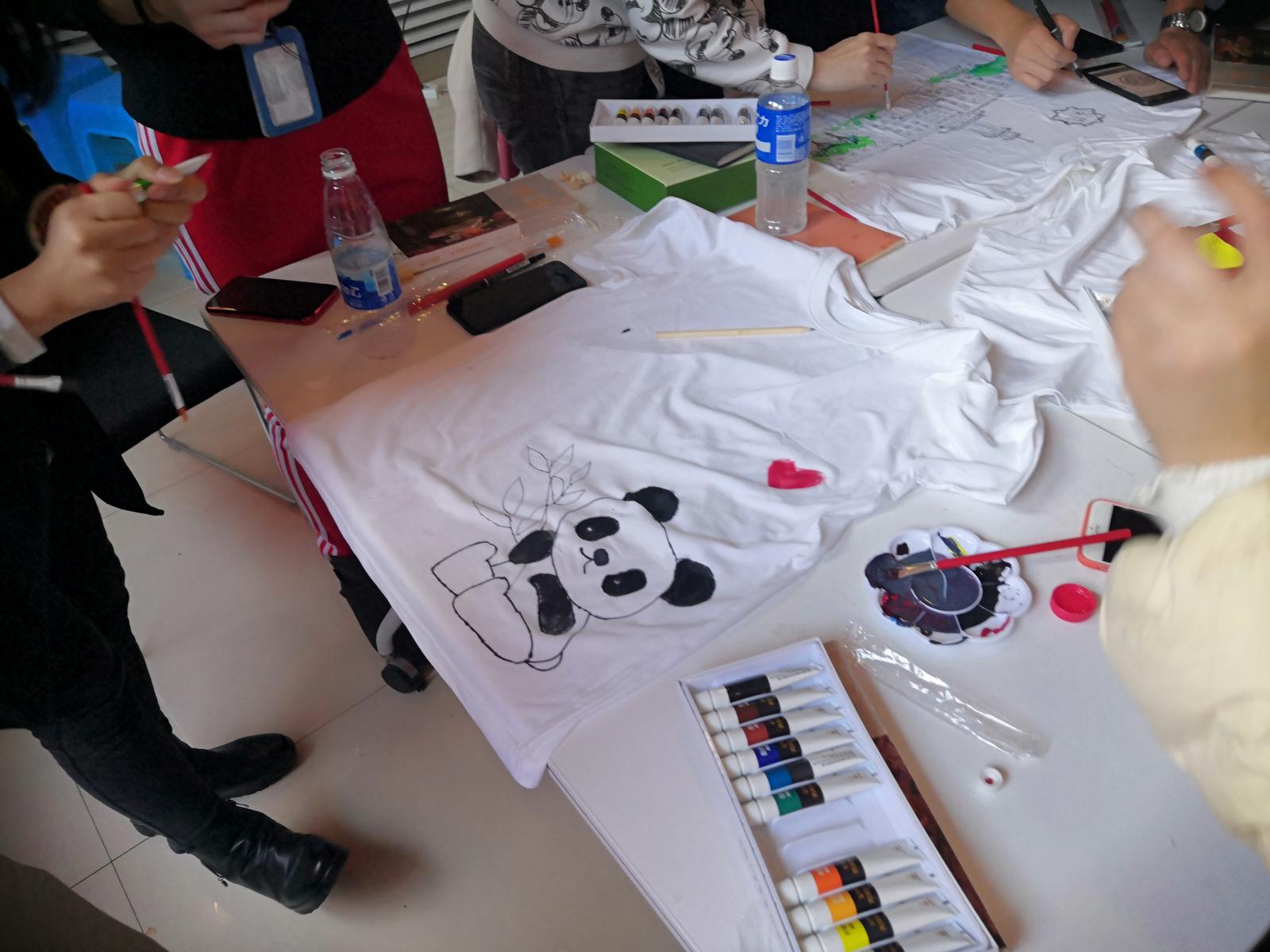 在“文化画出来”环节,在场同学通过设计南开和中国元素的创意文化衫,表达了对新中国建国70周年、南开大学建校100周年的美好祝福。国宝大熊猫、南开校徽、百年校庆吉祥物阳阳和亮亮等元素纷纷呈现。其中,有一幅“画作”格外引人注目,它以太阳花作为主元素,用日语和越南语书写“我是爱南开的”,并增添了中国、日本、越南三国的国旗,这一创意画作彰显了中外合作友好关系,赢得了大家的一致赞许。