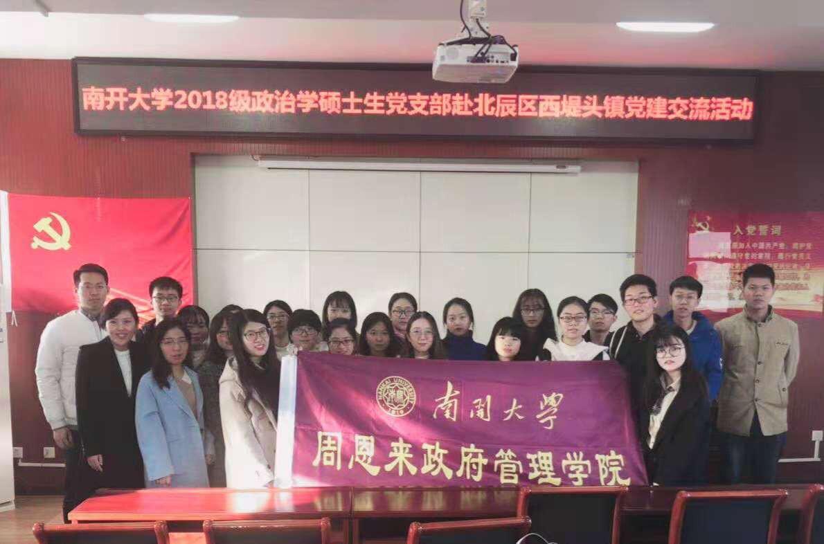 十九大报告指出,农业农村农民问题是关系国计民生的根本性问题,必须始终把解决好“三农”问题作为全党工作的重中之重,实施乡村振兴战略。为了调研乡村振兴战略在基层的落地情况,11月30日下午,南开大学周恩来政府管理学院2018级政治学硕士生党支部来到天津市北辰区西堤头镇和东赵庄村开展调研活动,学院团委副书记杨晓颖老师带队。本次调研以“求真力行·生态文明助力乡村发展”为主题,旨在促进学生党员将专业知识与乡村振兴战略相融合,通过实践砥砺真知,进一步深入基层、感受基层、了解基层,埋下服务祖国基层大地的种子。