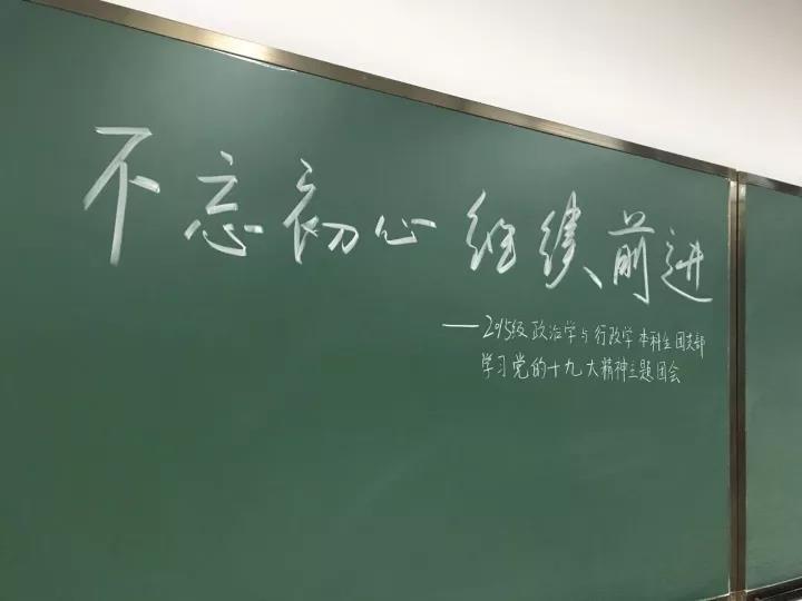 2015级本科政治学与行政学团支部组织开展了以“不忘初心,继续前行”为主题的十九大精神学习会。会上,大家讨论解读了关于十九大报告的图解分析,包括了大会的主题、过去五年的十大历史性成就一个历史使命与四个“伟大”、一个重要思想以及新时代坚持和发展中国特色社会主义的14条基本方略等八个方面的内容。经过这次详细的学习之后,同学们纷纷表示在今后的学习生活中要承担起肩上的重担,不忘初心,继续前行。