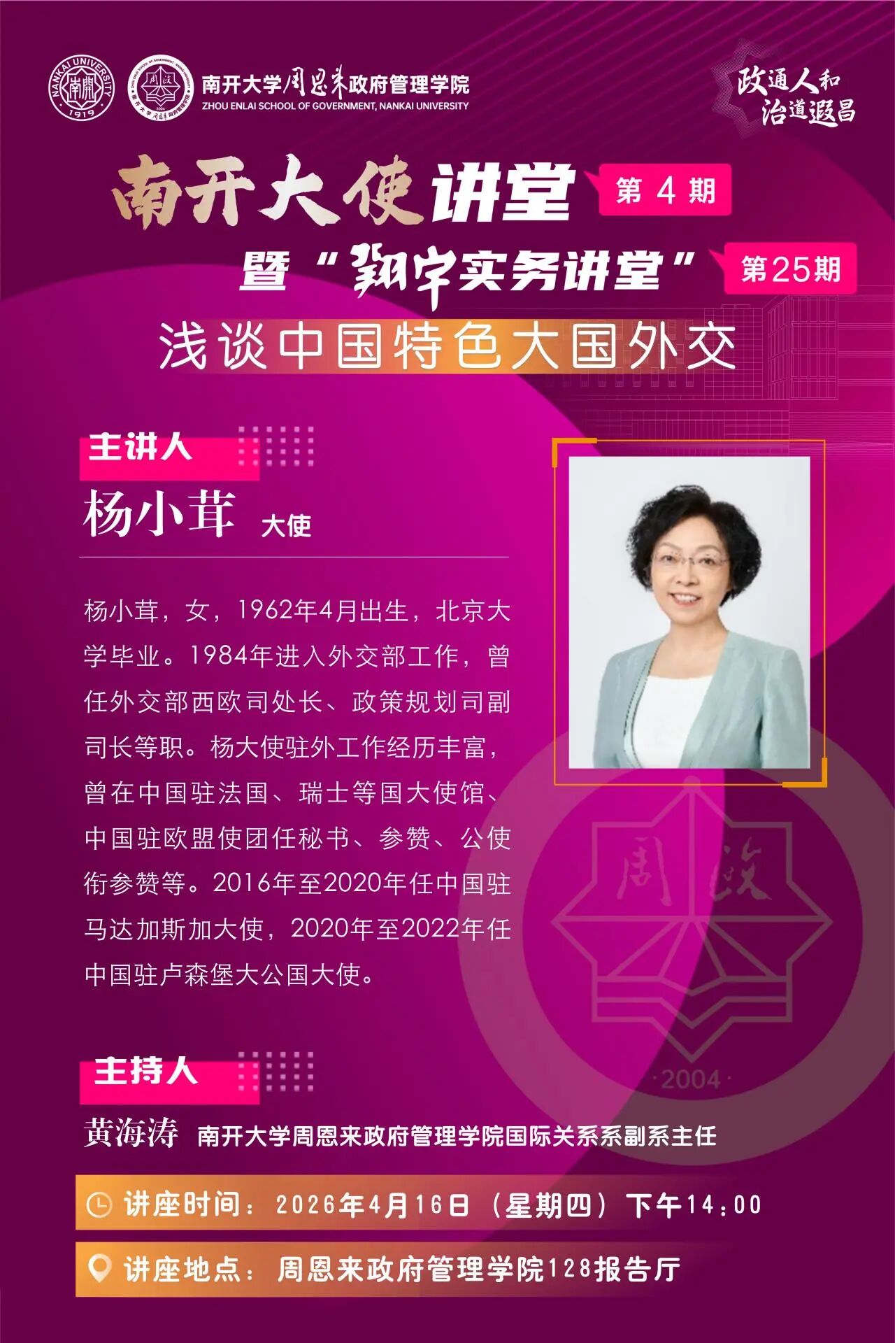 南开大使讲堂第4期暨“翔宇实务讲堂”第25期 | 浅谈中国特色大国外交