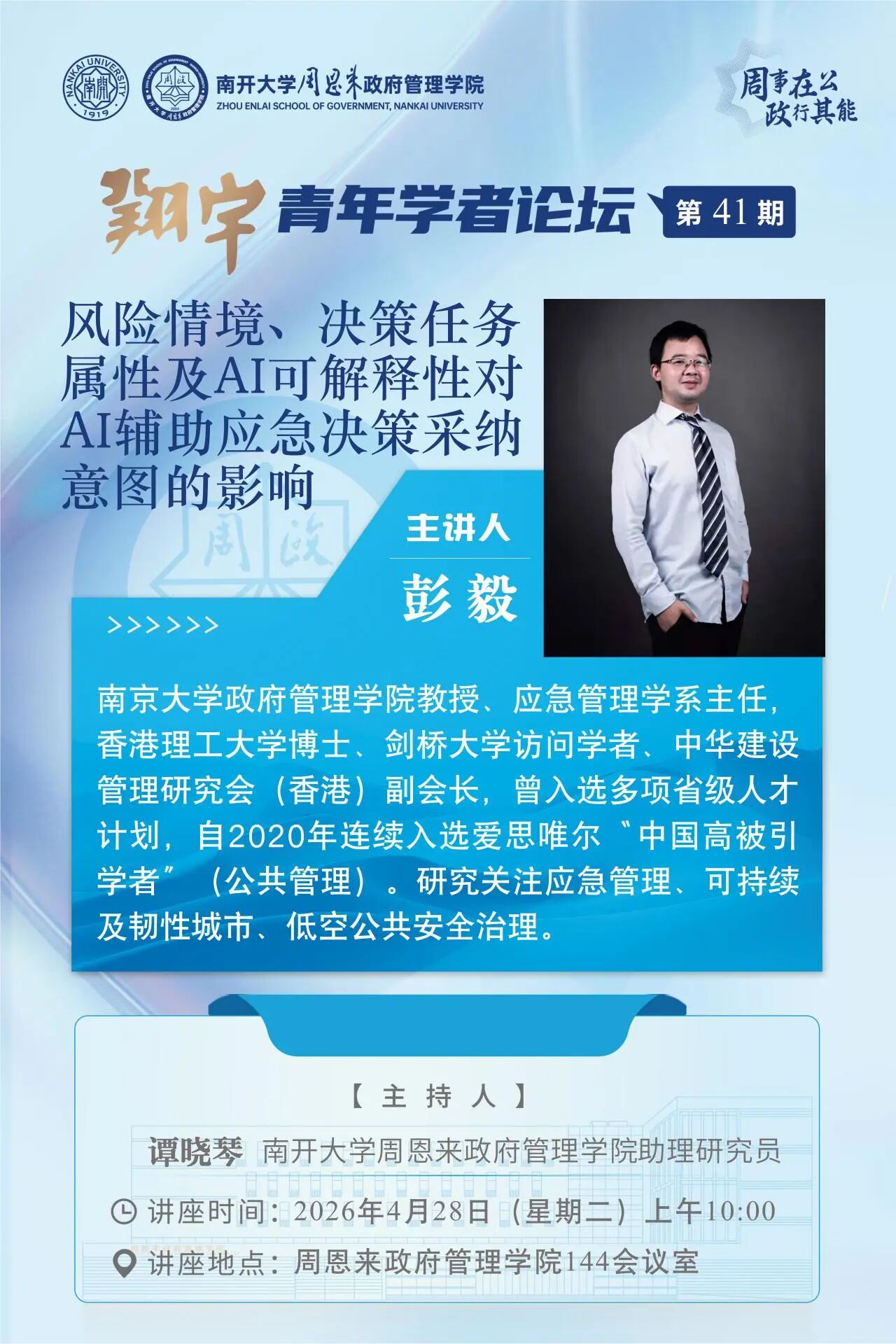 翔宇青年学者论坛第41期|风险情境、决策任务属性及AI可解释性对AI辅助应急决策采纳意图的影响